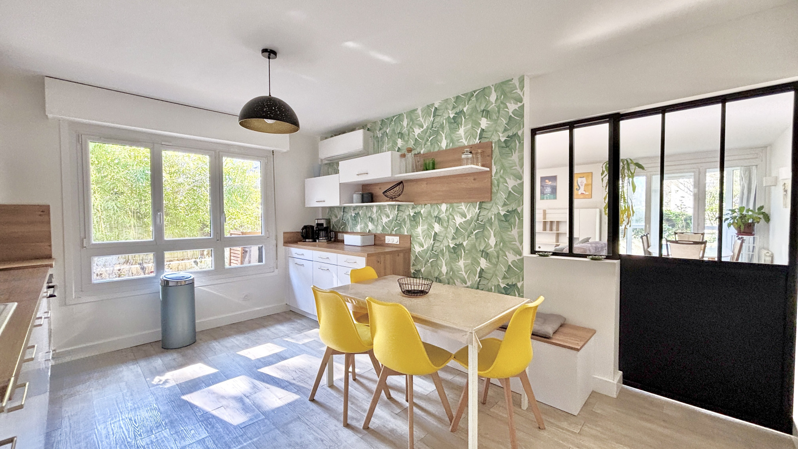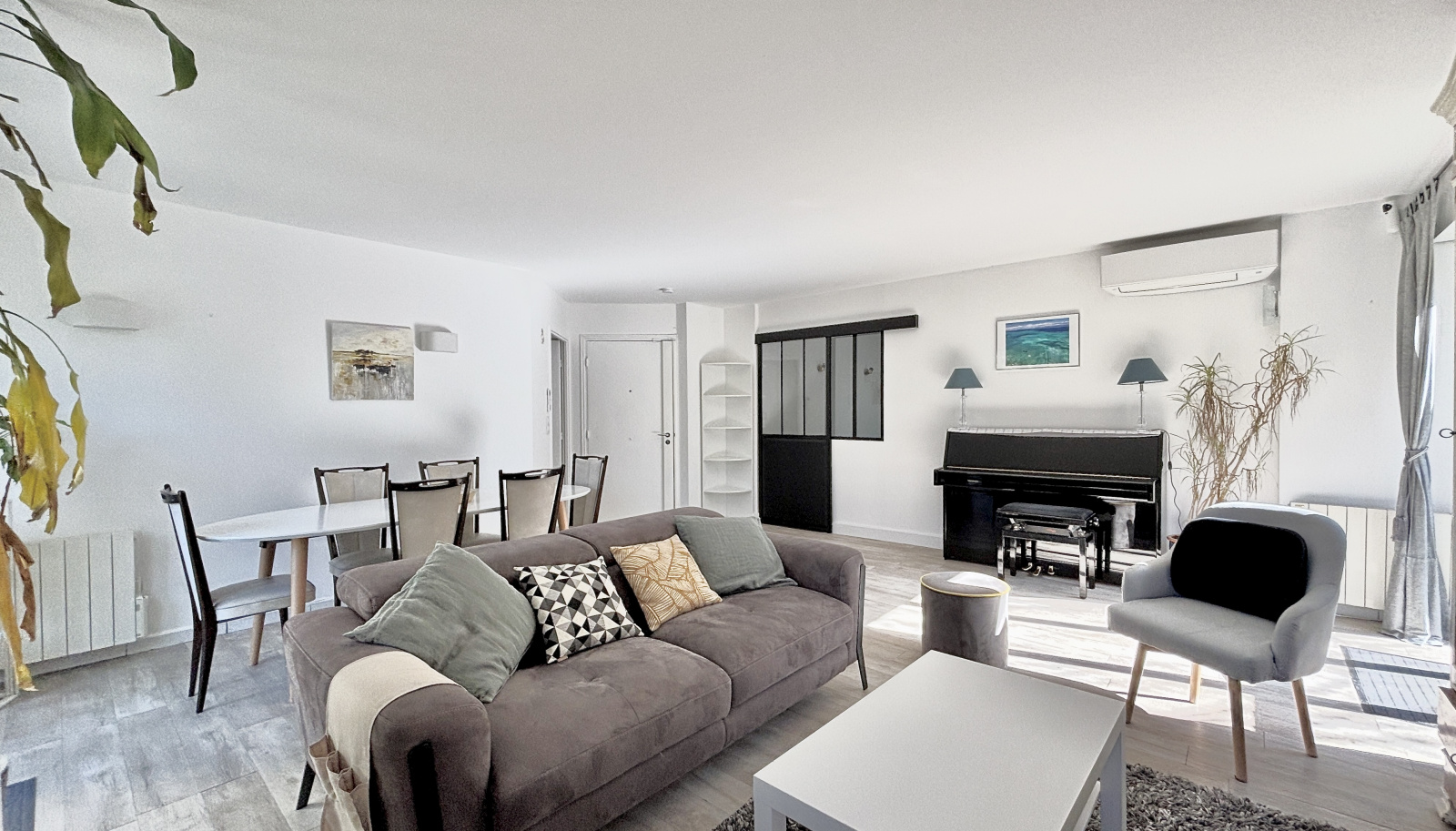 Idéalement situé au calme, au sein d'une résidence fermée de 1990, T6 de 127,28m2 partiellement climatisé composé d'une entrée avec placard donnant sur un bureau de 11,95m2 avec placards aménagés et buanderie équipée (lave-linge, sèche-linge) attenante, une cuisine de 15,40m2 entièrement équipée, un séjour de 32,97m2 ouvert sur un jardin de 200m2, une chambre de 9,7m2 avec salle d'eau et un WC.