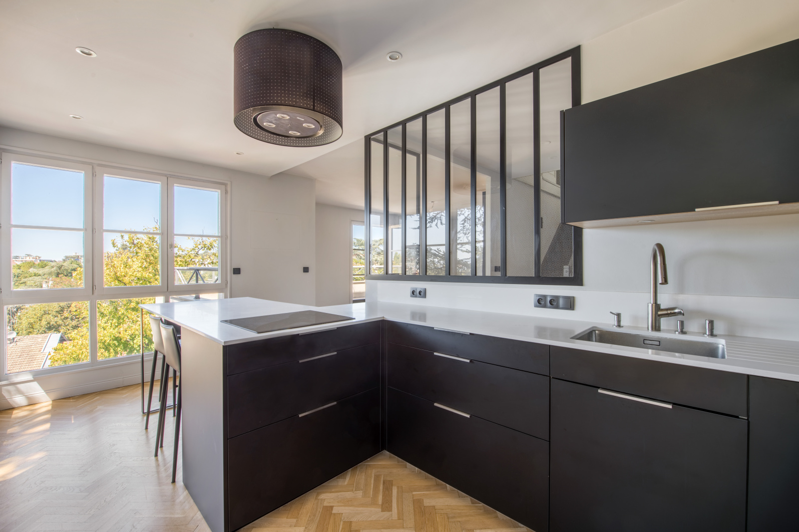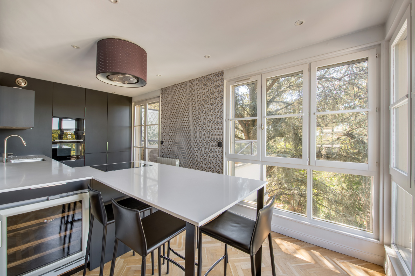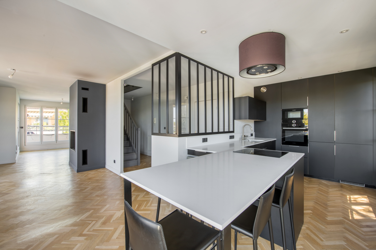 Rare, comme une maison sur le toit, dans une résidence de bon standing de 1992, en dernier étage, découvrez cet atypique duplex de 119,42m2 carrez. De plain pied, il se compose d'une belle entrée, une vaste pièce à vivre séjour salle à manger cuisine américaine entièrement aménagée, de grandes fenêtres éclairent les pièces, puis accès sur un balcon côté cuisine et côté séjour accès sur une terrasse en "L" de 31,85m2. L'étage du bas propose également une chambre avec sa saale d'eau et dressing, un wc séparé et des rangements sous escaliers.